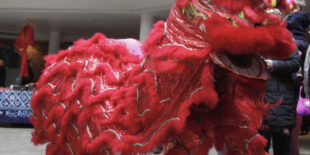 Photo of a Lunar New Year costume dancing.