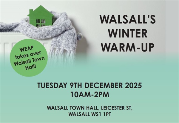 Walsall is turning global climate conversations into practical support for residents this winter. The Walsall Energy Action Project (WEAP) will be hosting a free community drop-in event, the “Winter Warm Up,” at Walsall Town Hall on Tuesday 9 December.