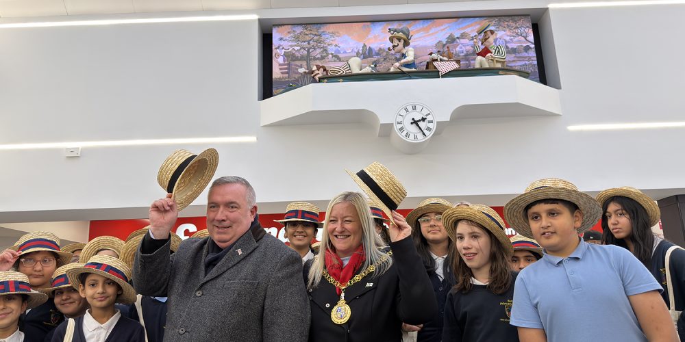 Residents, schoolchildren and community partners gathered in the Bradford Mall atrium area in the Saddlers Shopping Centre to witness the first chimes of the iconic clock at 2pm, marking the completion of a restoration that honours Walsall born author Jerome K. Jerome and his world-famous novel Three Men in a Boat.